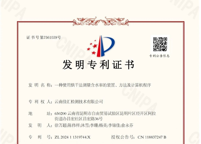 喜報!云南佳匯檢測技術(shù)有限公司獲得三項檢測專利